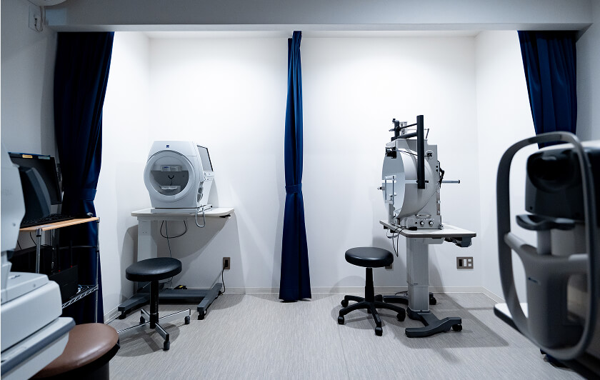 静的・動的視野検査、光干渉断層計、眼底カメラ、眼軸長測定