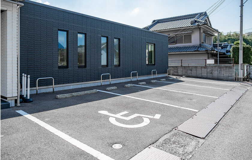 • 院前の駐車場は身障者用の駐車スペースを完備